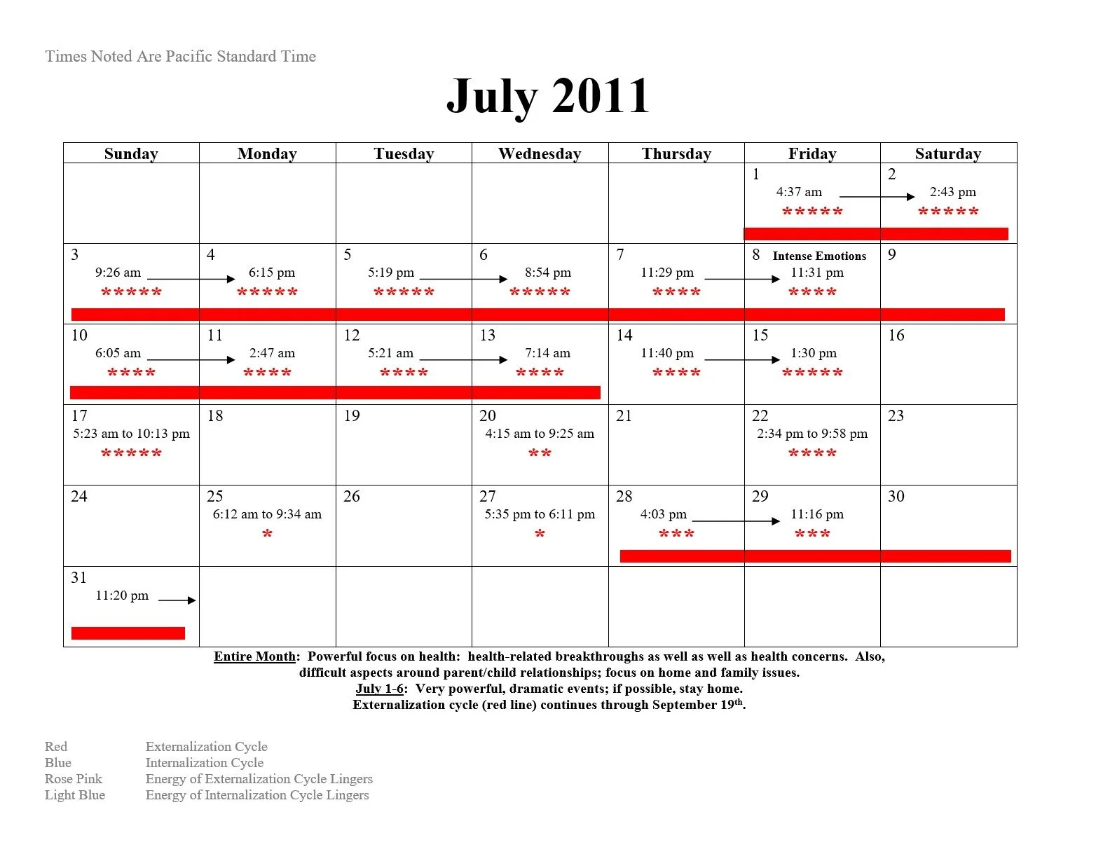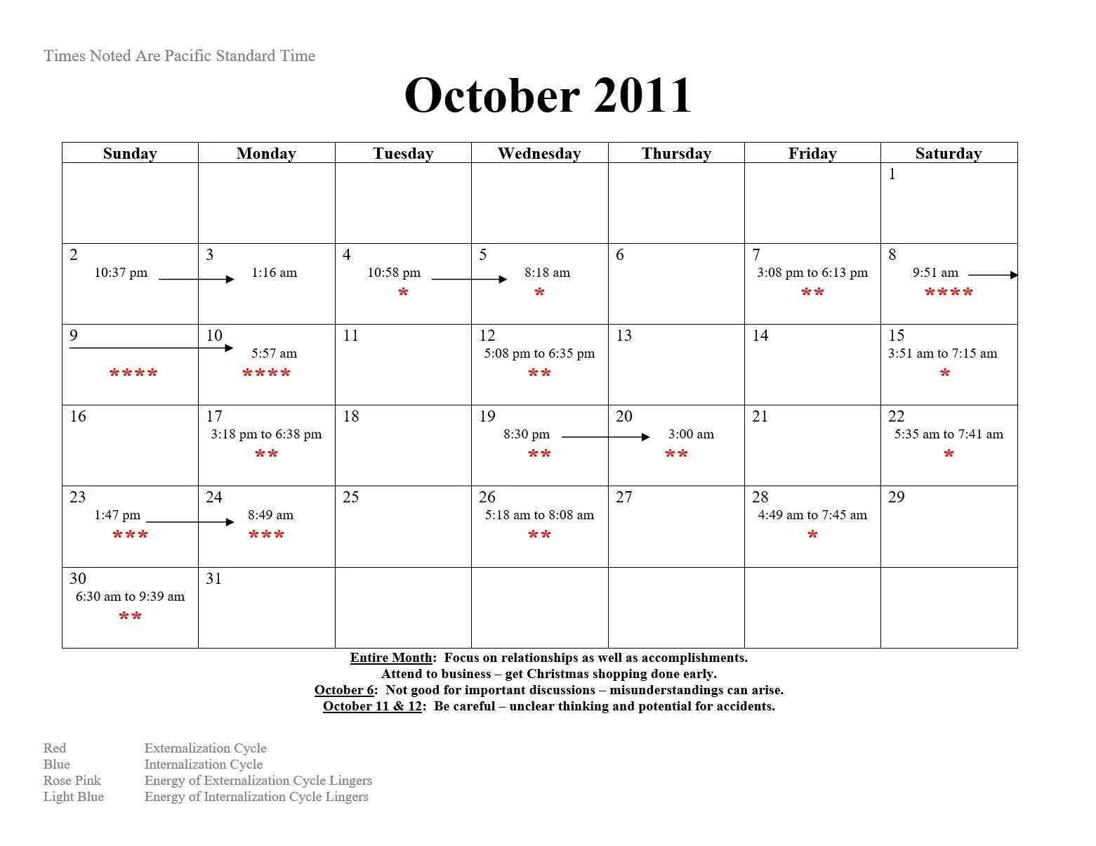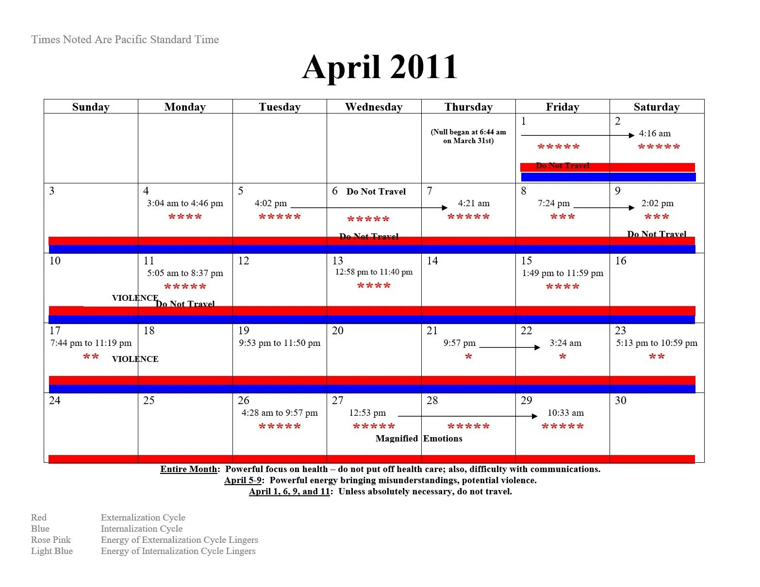 2011 Intensification and Null Cycle Calendar