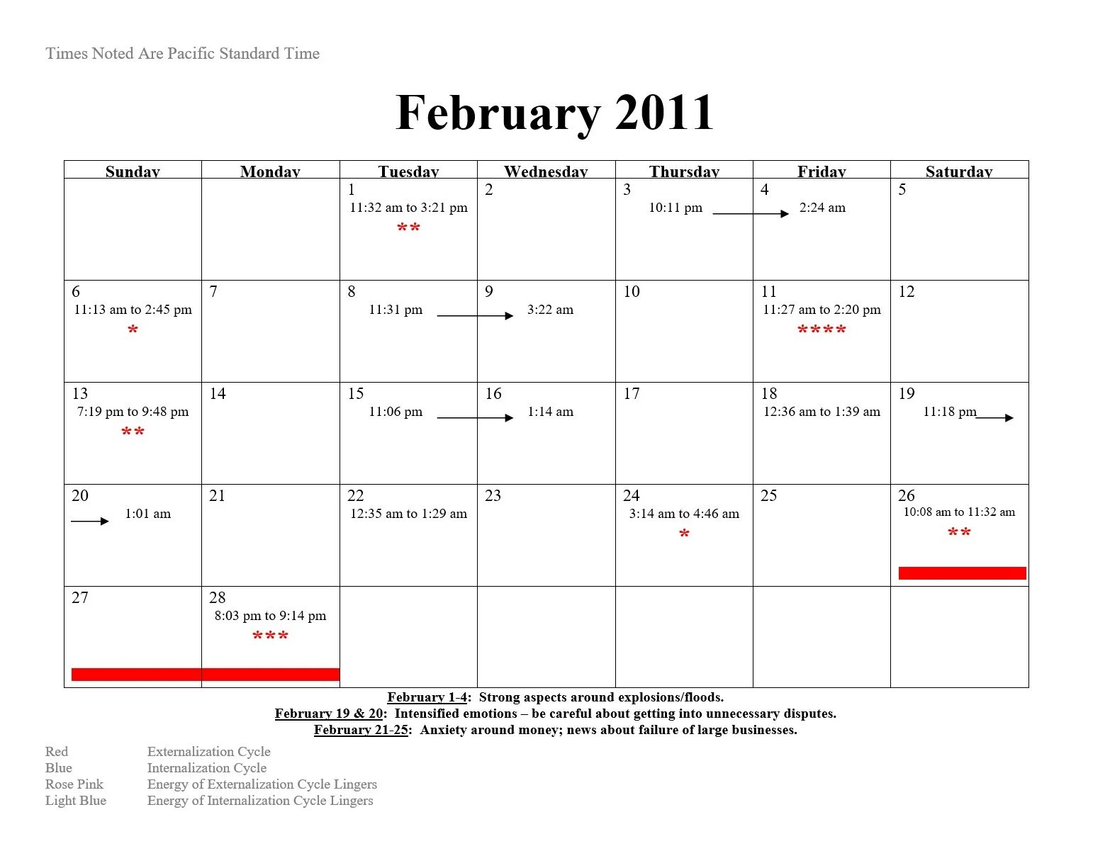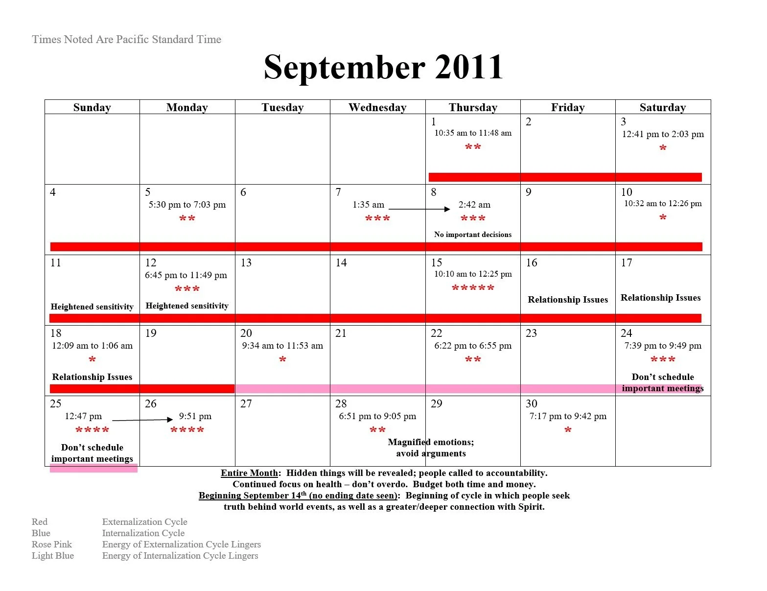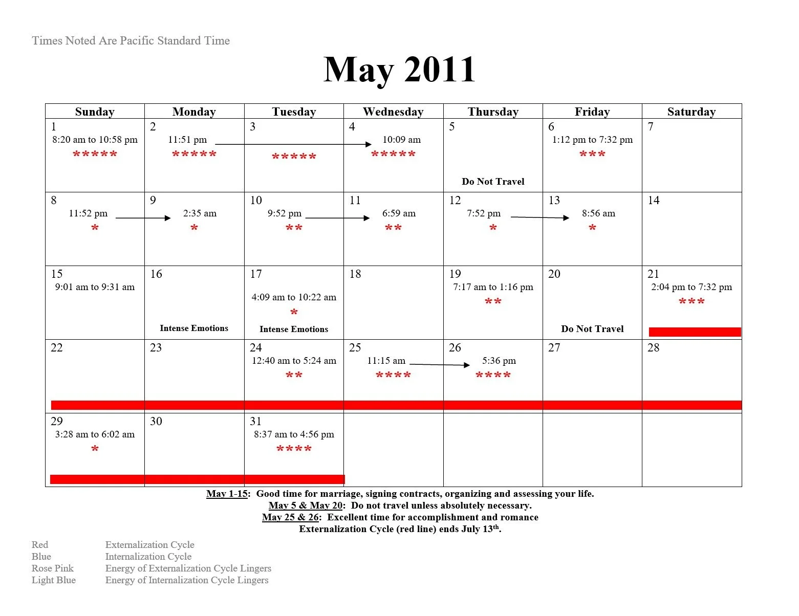 2011 Intensification and Null Cycle Calendar